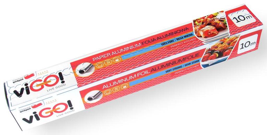 Alobal VIGO - neboli hliníková folie, silná 15 mikronů se používá v kuchyni při vaření a pečení. Také vhodný ke grilování masa. Délka 10 m.
