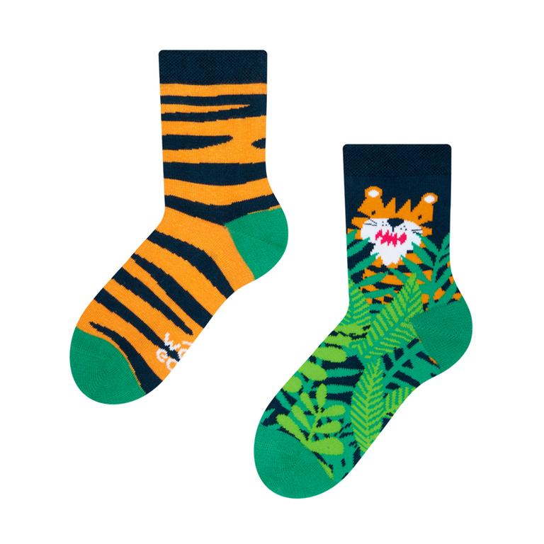 Dětské veselé ponožky DEDOLES tygr, velikost 23-26. S veselými ponožkami už nebudete při ranním oblékání bojovat. Ručíme jen za upřímnou zábavu. Navíc se můžete spolu s vaším prckem sladit. Mnohé z párů veselých ponožek máme v dospělé i dětské velikosti. Materiál: 78% bavlna, 20% polyamid a 2% elastan. Pohodlné nošení, ponožky perte v maximální teplotě 40°C, nedoporučuje se: sušení v bubnové sušičce, chemické čištění ani použití bělidla.
