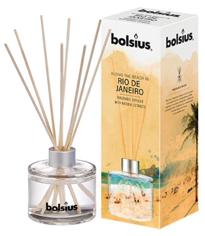 Vonný difuzér BOLSIUS 100ml RIO DE JANEIRO. Vytvořte si příjemnou atmosféru pomocí dekorativního osvěžovače vzduchu v podobě difuzéru, Vámi vybraná vůně se uvolní po vložení tyčinek. Intenzitu si můžete regulovat počtem tyčinek v difuzéru.