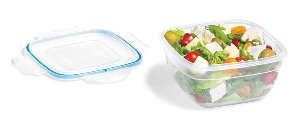 Dózy Lock & Lock "Easy Match" čtvercové jsou bezpečné a funkční nádoby vyrobené z kvalitního plastu, který je trvanlivý a odolává vysokým teplotám. Tyto dózy jsou 100% vzduchotěsné a tím zajišťují dlouhodobou čerstvost uchovávaných potravin a jsou vynikající také z hlediska uchování vůně (aroma). Čtyři pohyblivé "klipy" zajišťující víko jsou odolné proti opotřebení. Nádoby mají speciálně upravené vnější dno tak, aby se mohly bezpečně stavět na sebe a neklouzaly. Dózy Lock & Lock lze použít v chladničce, v mikrovlnce, v mrazáku i v myčce na nádobí. Dózy Lock & Lock prošly přísnými hygienickými zkouškami a odpovídají nejpřísnějším předpisům. Objem 950 ml. Barva čirá, tyrkysová.