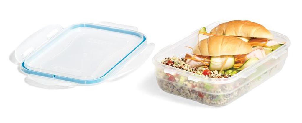 Dózy Lock & Lock "Easy Match" obdélníkové jsou bezpečné a funkční nádoby vyrobené z kvalitního plastu, který je trvanlivý a odolává vysokým teplotám. Tyto dózy jsou 100% vzduchotěsné a tím zajišťují dlouhodobou čerstvost uchovávaných potravin a jsou vynikající také z hlediska uchování vůně (aroma). Čtyři pohyblivé "klipy" zajišťující víko jsou odolné proti opotřebení. Nádoby mají speciálně upravené vnější dno tak, aby se mohly bezpečně stavět na sebe a neklouzaly. Dózy Lock & Lock lze použít v chladničce, v mikrovlnce, v mrazáku i v myčce na nádobí. Dózy Lock & Lock prošly přísnými hygienickými zkouškami a odpovídají nejpřísnějším předpisům. Objem 850 ml. Barva čirá, tyrkysová.