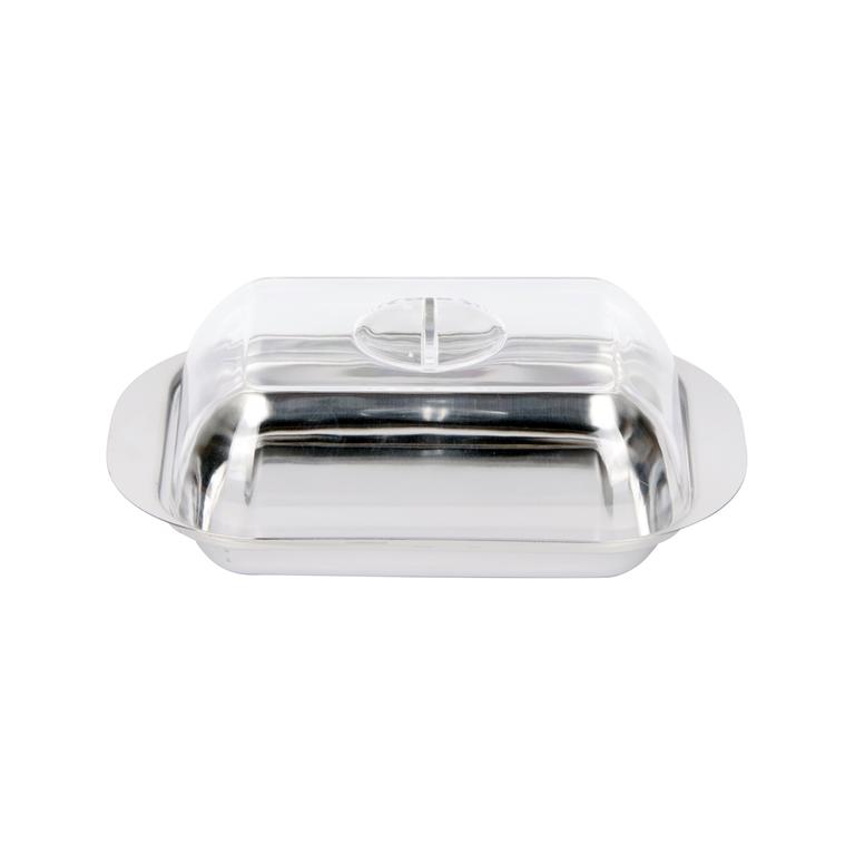 Máslenka je vyrobená z nerezové misky a plastového víka-k uchování másla v hygienickém prostředí v lednici. Je velmi praktická při každodenním používání. Materiál - nerez, plast. Rozměry - 17,5 x 11 x 4,5 cm.