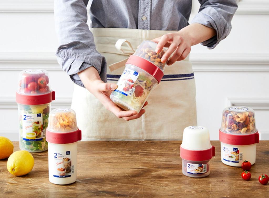 Dóza na potraviny Lock&Lock - 2 v 1 je vzduchotěsná a vodotěsná, vhodná k přenášení a uchování potravin. Je přirozené, že během vaší procházky můžete dostat na něco chuť. Takže byste měli mít u sebe vždy nějaké občerstvení. Pro tento účel je dvoukomorová miska praktickým řešením, které je pro takové situace ideální. Miska dokonale umožňuje oddělit jídlo do dvou komor tak, aby nedošlo k jeho smíchání. Objem 1070 ml (760 ml + 310 ml).