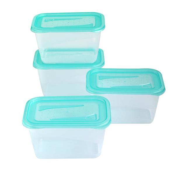 Praktická sada 4ks dóz na potraviny Fresh & Freeze s víkem - objem 0,75l. Svěží moderní design, snadné otevíraní. Vhodné na uchovávání potravin, na obědy, svačiny apod. Díky těmto dózám uchováte potraviny déle čerstvé. Vhodné též do mrazáku. Rozměry - 15,5 x 10,5 x 8,5 cm. Barva - čirá s modrým víčkem.