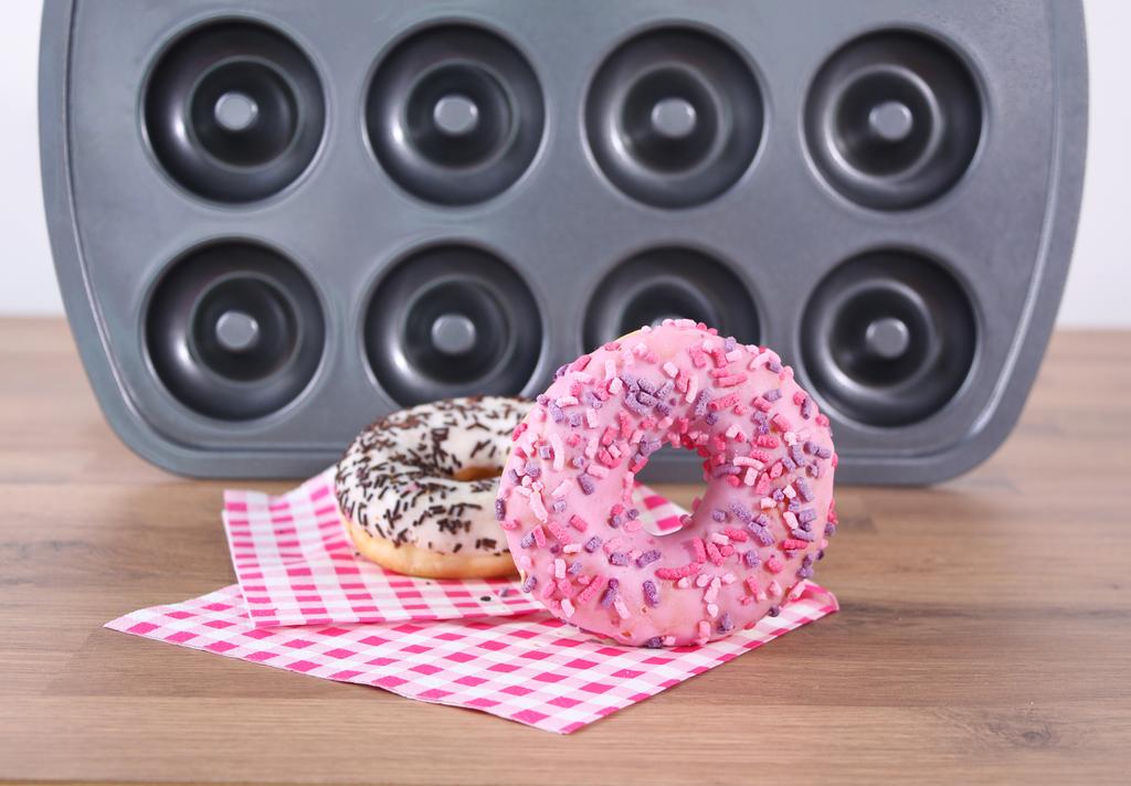 Forma na donuty TORO by neměla chybět v žádné moderní domácnosti. Je vyrobena z uhlíkové oceli, která umožňuje snadné pečení a přípravu pokrmů jak na sladko tak na slano. Nepřilnavý povrch je snadno omyvatelný. Velikost formy je 40 x 28 x 2,5 cm.