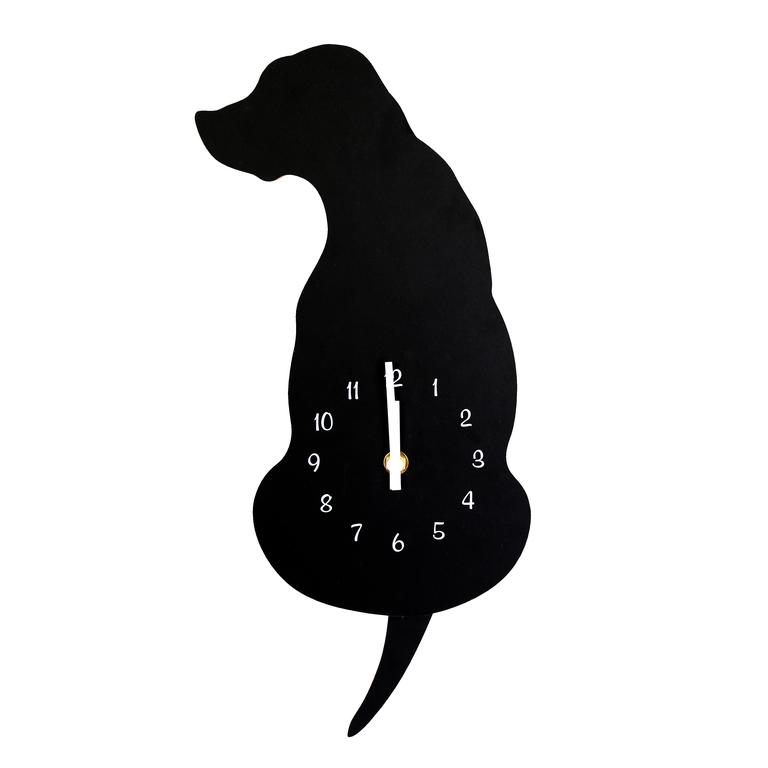 Nástěnné hodiny ve tvaru psa se hodí do každého dětského pokoje. Černé hodiny mají stojkový systém Quartz, rozměr 25,5 x 4,5 x 40 cm.