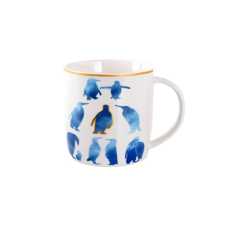 Keramický bílý hrnek s modrým potiskem o objemu 350 ml je vhodný především k servírování teplých nápojů. Lze použít do mikrovlnné trouby i do myčky na nádobí. Tento hrnek Vás jistě potěší při každém stolování. Rozměry - 8,7 x 9,5 cm, assort.