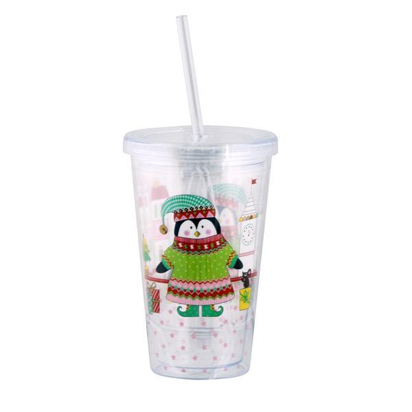 Plastový kelímek s brčkem o objemu 460 ml je vhodný především na míchané nápoje o vánočních večírcích. Assort vánočních motivů - sněhulák a tučňák.