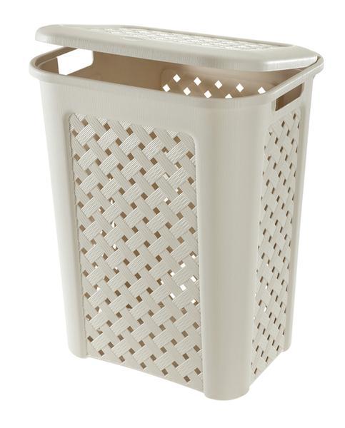 Moderní koš na špinavé prádlo je vhodným doplňkem Vaší domácnosti, má velmi pěkný ratanový design. Materiál plast. Objem koše - 50 l. Rozměry koše - 43, 5 x 33, 5 x 55 cm. Konkrétní barevné provedení výrobku určuje označení, které je uvedeno za lomítkem čísla položky. /210 - krémová.