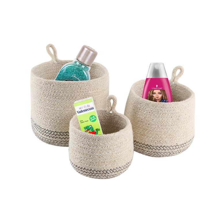 Sada kulatých košíků z mořské trávy zajistí u Vás doma pořádek, krásnější uspořádání i skladování Vašich věcí. Rozměry - 15,5 x 15 cm, 12,5 x 13 cm, 10,5 x 10 cm .