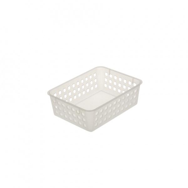 Plastový košíček je univerzální pomocník v domácnosti. Velmi pěkný designový a lehký košík je možné využít pro úschovu věcí v domácnostech nebo přenášení a odložení věcí dle rozměru výrobku. Košíček je velmi lehce omyvatelný od nečistot. Rozměry 18,3 x 14 x 6,2 cm. Barva transparentní.