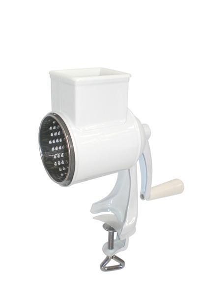 Kovový mlýnek na srouhanku či ořechy s plastovou rukovětí a pěchovadlem. Mlýnek má plastovou podložku pro uchycení mlýnku na stůl, případně na jinou deskovou plochu. Rozměry - 26,5 x 20,5 x 8 cm.