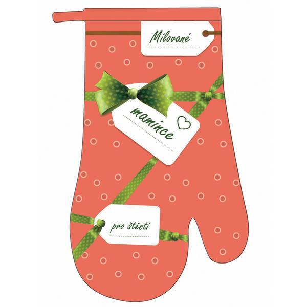 Tato dárková chňapka - tvar rukavice udělá radost všem maminkám. Chňapka je vhodná pro chycení a přenášení horkých nádob, pečících plechů z rozpálené trouby nebo na zvedání rozpálené pokličky. Rozměry - 27 x 17 cm. Materiál - povrch: přední strana 100% bavlna, zadní strana 100% polyester, výplň: 65% bavlna, 35% polyester.