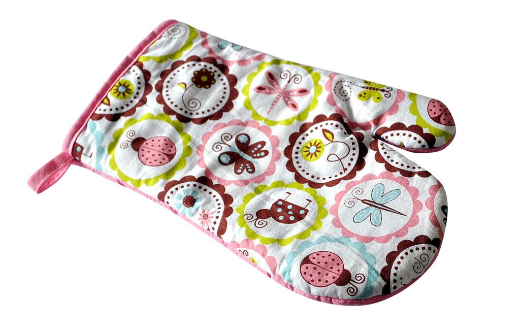 Praktická chňapka tvar rukavice je nejen praktickým pomocníkem ve Vaší kuchyni, ale i vhodným módním doplňkem. Chňapka je vhodná pro chycení a přenášení horkých nádob nebo pečících plechů z rozpálené trouby nebo na zvedání rozpálené pokličky. Různé motivy dekoru - 4 designy. Materiál - bavlna. Očko na zavěšení. Rozměry - 19 x 27 cm.