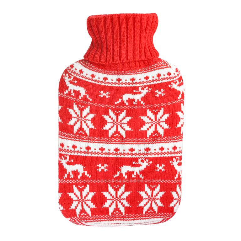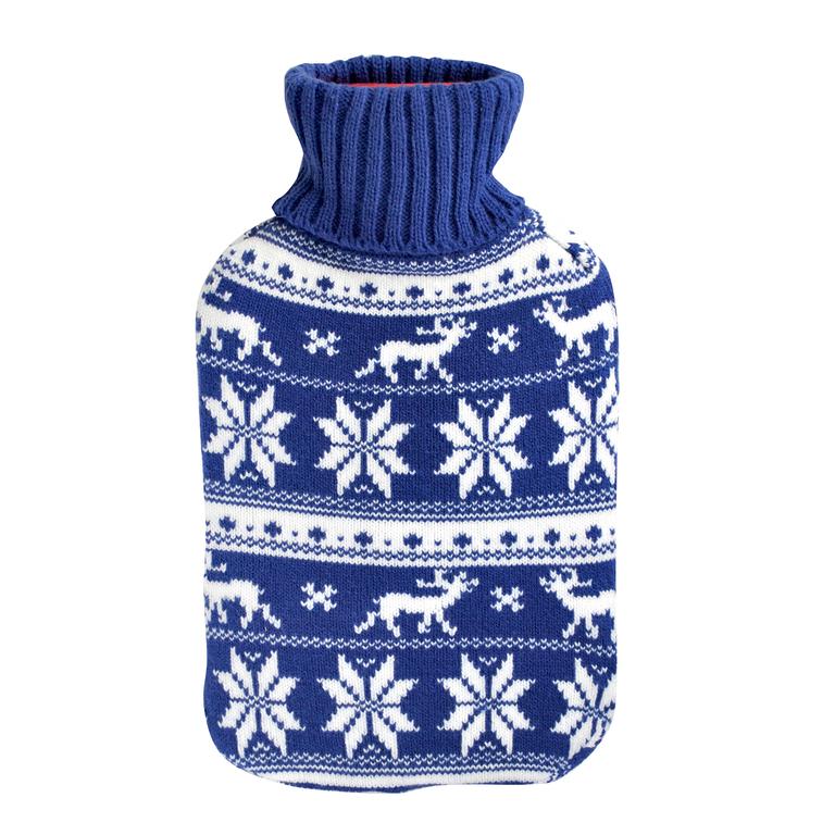 Gumová láhev v pleteném obalu s designem norský vzor o objemu 2 l. Lahev neboli thermofor je schopen udržet příjemné teplo, slouží k lokálnímu zahřátí části lidského. Využívá se při bolestech zad, svalů, kloubů, nachlazení, prohřátí ledvin nebo na prohřátí studené postele. Láhev je vyrobena z kvalitní, teplu odolné pryže.Vlněný obal - norský vzor zamezuje přímému kontaktu s gumovým povrchem termoforu, zmírňuje nepříjemný dotek na horký termofor, zamezuje vzlínání gumového pachu. Barva - červená, modrá.