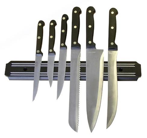 Magnetická lišta na nože, vyrobena z tvrdého černého plastu polypropylenu, ve které jsou vodorovně zabudované nerezové lišty s magnetem, délka 33 cm, slouží ke snadnému a praktickému umístění nožů ve Vaší kuchyni, jsou vždy po ruce, netupí se a jsou bezpečné uložené. Materiál na uchycení není součástí balení. Velikost - 33 x 3 cm.