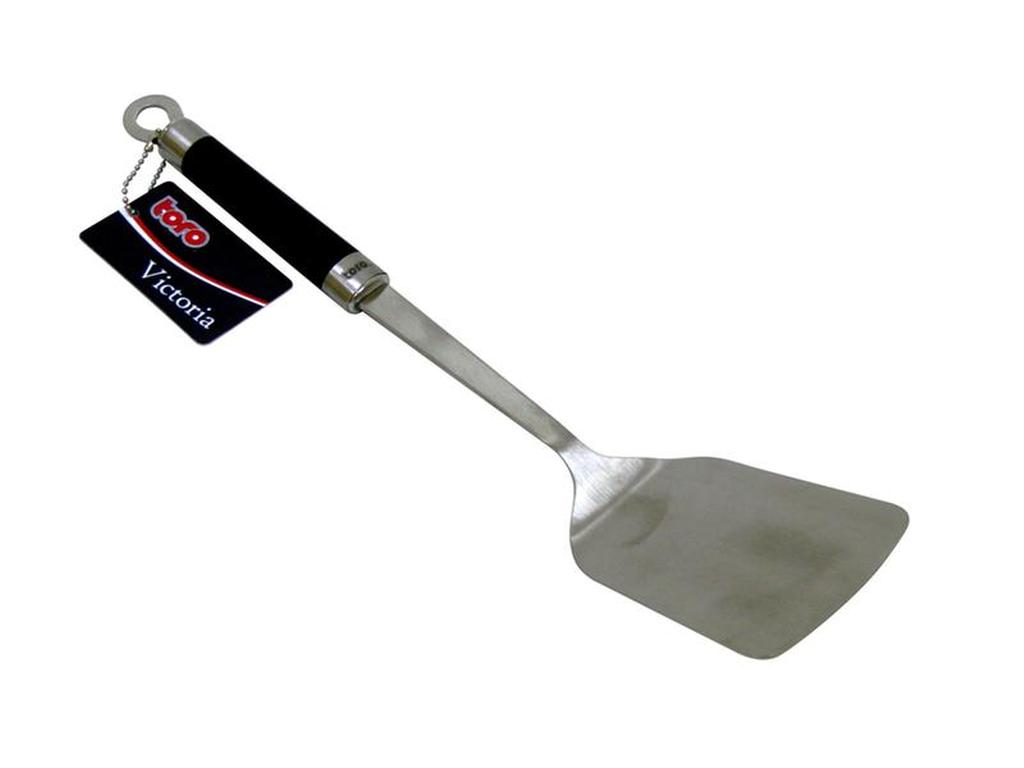 Obracečka je klasikou mezi kuchyňským náčiním. Tento výrobek je snadno omyvatelný a vhodný do myčky na nádobí. Pogumovaná plastová rukojeť je uzpůsobena pro zavěšení na závěsnou tyč a sedne do ruky. Řada Victoria. Materiál - nerez, pogumovaný plast. Rozměry - 35, 7 x 7, 9 cm