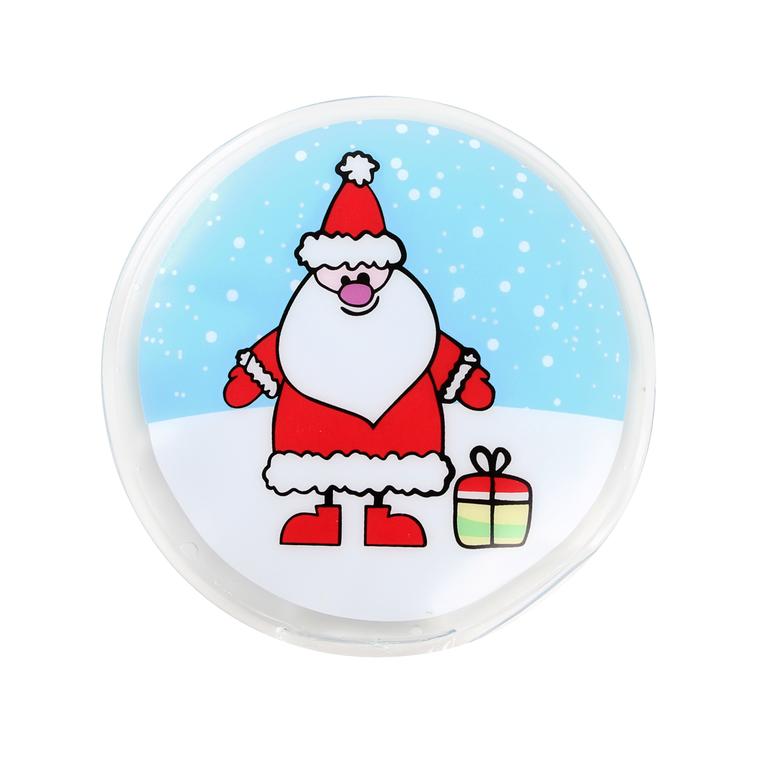 Ohřívač rukou s vánočním obrázkem. Ohřívač má v sobě tekutý gel a aktivační plíšek. Jakmile zlomíte plíšek, vyvolá se chemická reakce, na základě které gel zkrystalizuje a začne hřát. Abyste mohli ohřívač rukou znovu použít, musíte ho po vychladnutí povařit ve vařící vodě, tímto se krystaly gelu rozpustí a lze jej znovu použít.