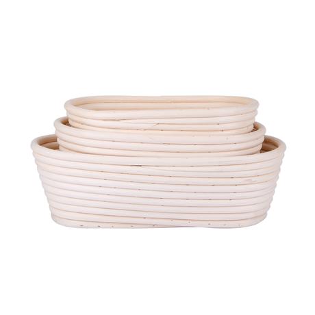 Zkusit doma upéct voňavý chléb. Oválná ošatka z pedigu usnadní přípravu Vašeho domácího chleba, navíc kváskový chléb kyne dost dlouho a díky ní se těsto zformuje a získá tradiční reliéf bochníku. Využijete ji po lehkém vysypání moukou ke kynutí těsta, ale i k uskladnění chleba, servírování pečiva i jako dekoraci. Tvar a struktura ošatky se otiskne do těsta a vytvoří tak klasický vzhled bochníku. Rozměr 21 x 15 cm, materiál - přírodní pedig (Pedig je přírodní materiál. Jedná se o vnitřní část stonku popínavé liany Calamus rotang - ratanu)