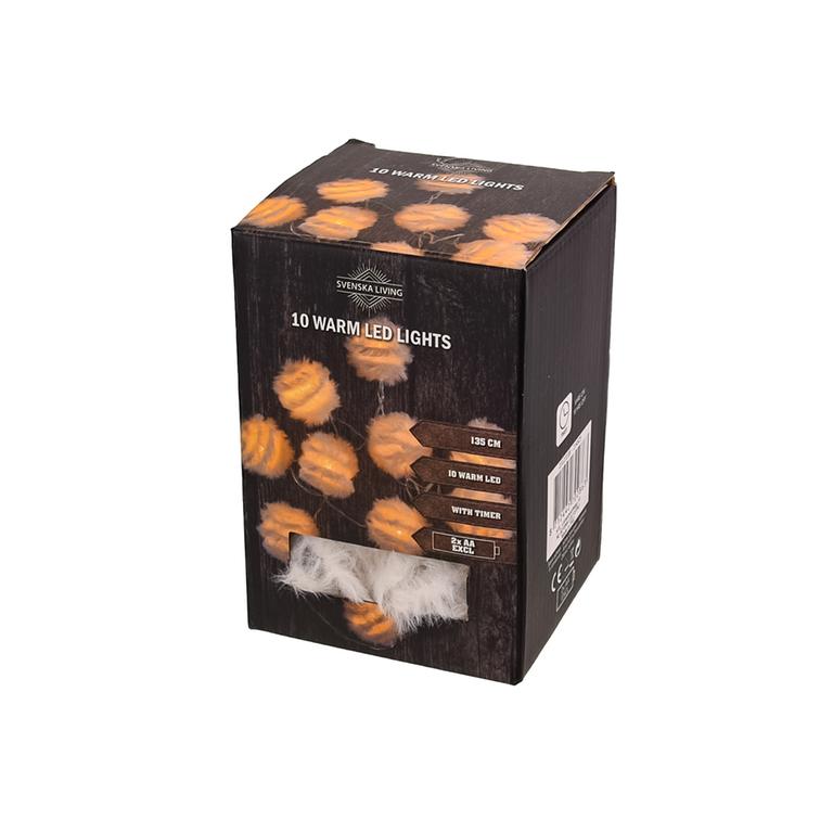 Vánoční světelný řetěz 10 LED koule pírka s časovačem 1,35 m, teplé světlo.
