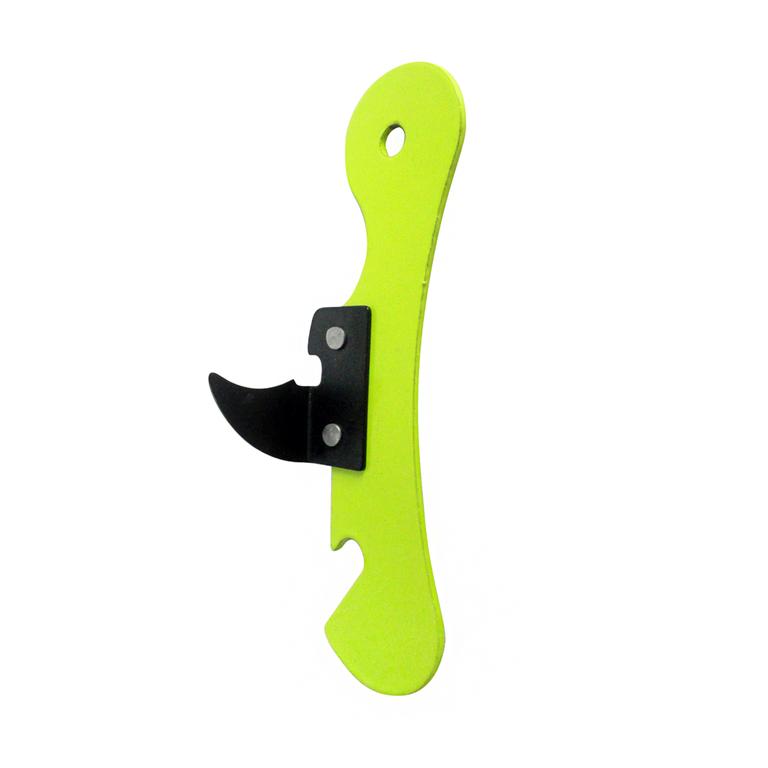 Univerzální kovový otvírák pro všechny druhy konzerv, dále otvírá i korunkové uzávěry na lahvích, barva zelená.