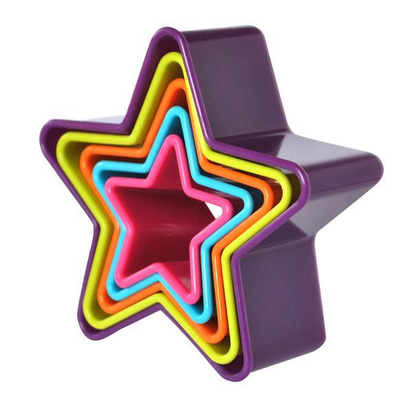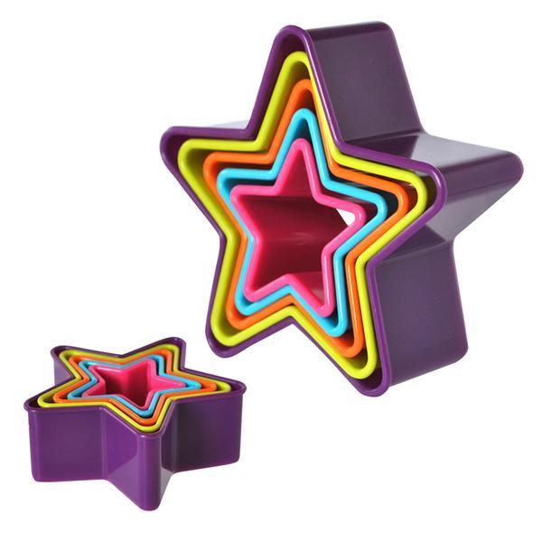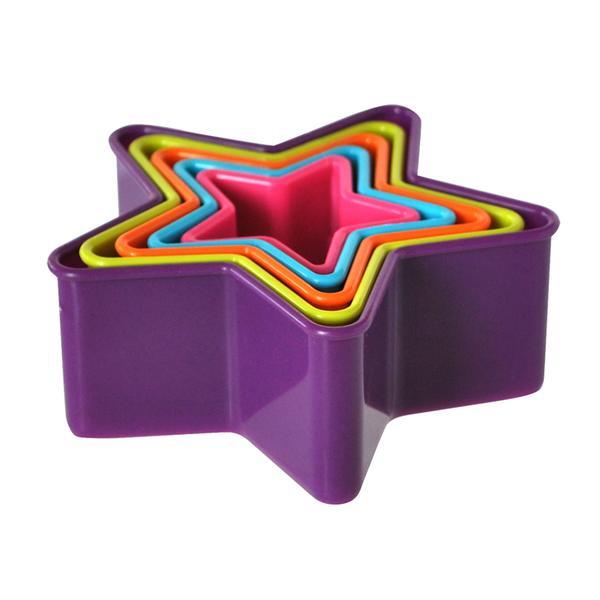 Plastová vykrajovátka na cukroví ve tvaru hvězdy. V balení 5 ks - různé velikosti. Assort barev.