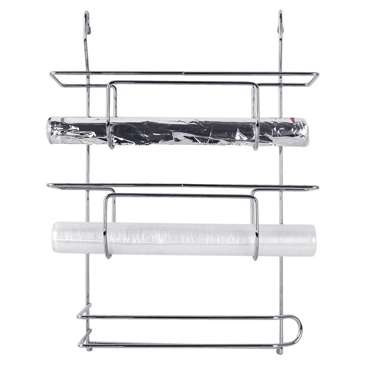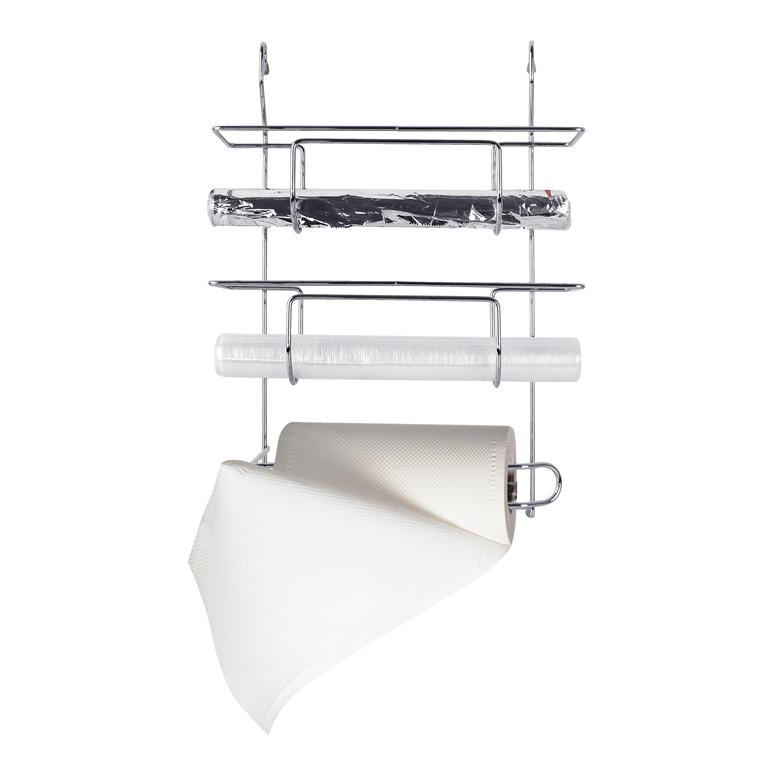 Do každé kuchyně vhodná tato praktická závěsná polička - na papírové utěrky, alobal a folii. Je obdélníková, vyrobená z pochromovaného kovu.