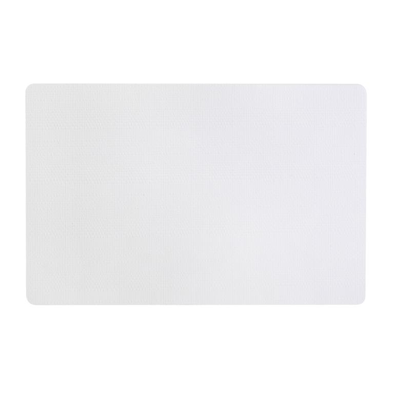 Prostírání na stůl je estetickou záležitostí, používá se pro vyzdobení jídelny a prostření stolu. Zároveň chrání proti znečištění, zašpinění nebo poškození. Barevné provedení - bílé. Prostírání z PVC se snadno udržuje a dá se snadno omýt, rozměry - 28,5 x 44 cm.