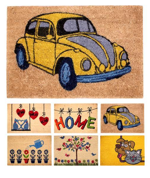 Rohožka z kokosového vlákna v rozměru 40 x 60 cm. Praktická rohožka před dveře na čištění obuvi. Pletená kokosová vlákna. Na výběr 6 různých moderních designů.