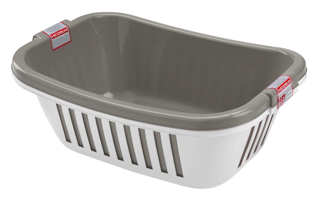Moderní koš na čisté prádlo, který je nezbytným pomocníkem při praní a sušení prádla. Koš na prádlo je velmi pěkný designový, lehký plastový doplněk každé koupelny. Velmi jednoduché tvarované uchopení umožňuje odnesení většího množství prádla. Je velmi lehce omyvatelný od nečistot. Sada košů na prádlo 2 ks, plast. Barva: Bílá a taupe. Rozměry koše 58 x 40 x 23 cm.