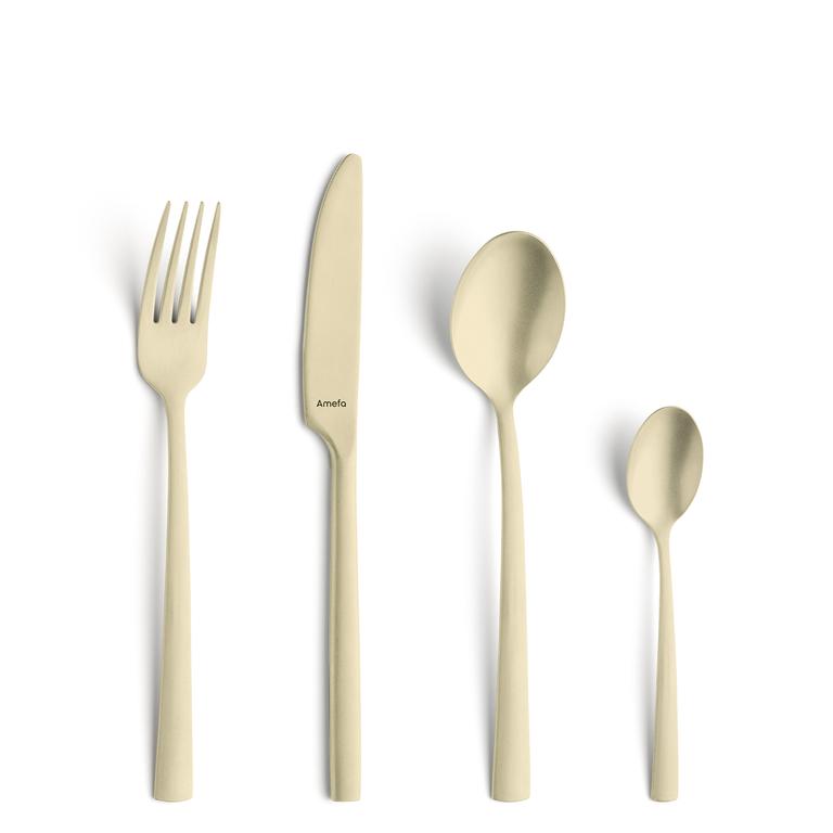 Sada příborů Amefa Manille z kvalitní nerezové oceli, díky které bude Vaše stolování zase o něco příjemnější. V kazetovém balení naleznete jídelní nože, vidličky, lžíce a lžičky po 4 kusech, barevné provedení - champagne. Nelze mýt v myčce na nádobí.