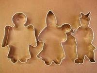 Sada 3 ks vykrajovátek na cukroví. Ve tvaru čerta,mikuláše a anděla. Vykrajovátka jsou z pocínovaného potravinářského plechu. Rozměry - anděl: 7,7 x 4,8 cm, čert: 7,7 x 3,8 cm, Mikuláš: 8,1 x 4,7 cm.