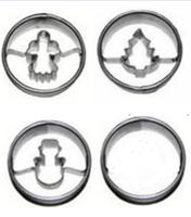 Sada vykrajovátek 4 ks - tvar kolečko s vánočním motivem. Vhodné na cukroví, perníčky, potahové nebo modelovací hmoty. Vykrajovátka jsou od českého výrobce a splňují všechny předepsané normy, vyrobeno z pocínovaného plechu. Průměr - 4 cm.