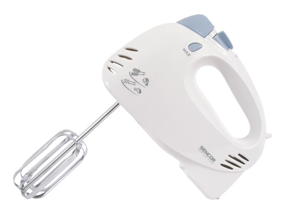 Ruční a na obsluhu velmi jednoduchý mixér Sencor. Ve výbavě má šlehací i hnětací metličky a jistě vás zaujme i jeho velmi tichý chod.