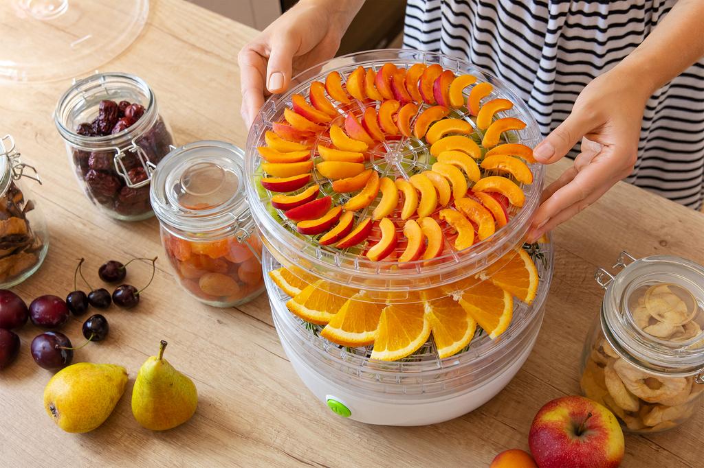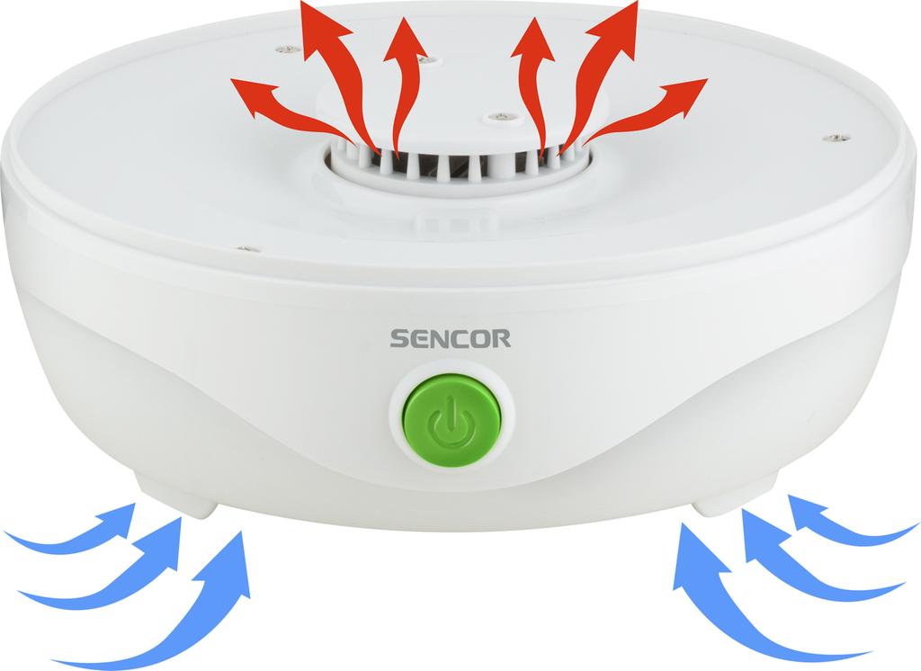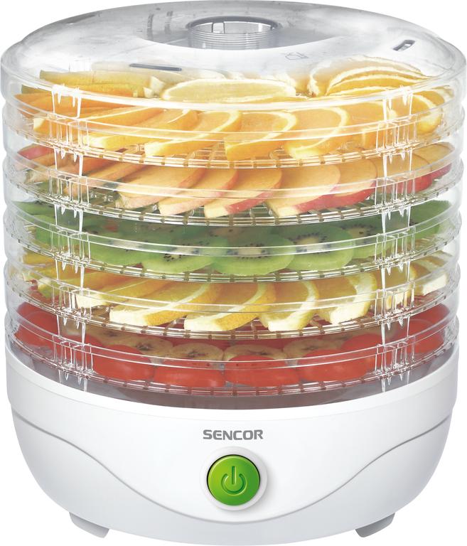 Sušička potravin Sencor v bílém provedení skvěle zapadné do každé kuchyně. Sušička je vybavena pěti platy na sušení, na kterých lze usušit v podstatě cokoli. Sušit ale můžete i s jedním sítem a ušetříte tím mnoho prostoru. Sušička potravin vhodná k přípravě například: sušeného ovoce (křížal, švestek, meruněk, banánů atp.), rozinek, sušené zeleniny do polévek, sušených rajčat, sušených bylinek, bylinkových čajů (máta, lipový květ, heřmánek atp.), sušených hub do polévek a pokrmů, sušených pomerančů na dekorace, sušených dýňových semínek, sušeného masa, sušených ryb Díky integrovanému ventilátoru se usuší všechny potraviny rovnoměrně.