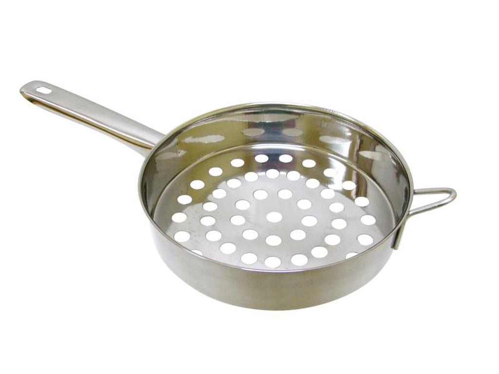 Síto na halušky je velmi oblíbeným pomocníkem při výrobě halušek, játrové i drožďové zavářky a noků do polévek. Zpracované těsto protlačujeme přes síto do vařící vody nebo polévky. Síto je opatřeno kovovým madlem s otvorem pro možnost zavěšení. Háček na kovové konstrukci zajišťuje stabilitu při zapření síta o okraj dřezu. Rozměry - 18 x 3,5 cm.