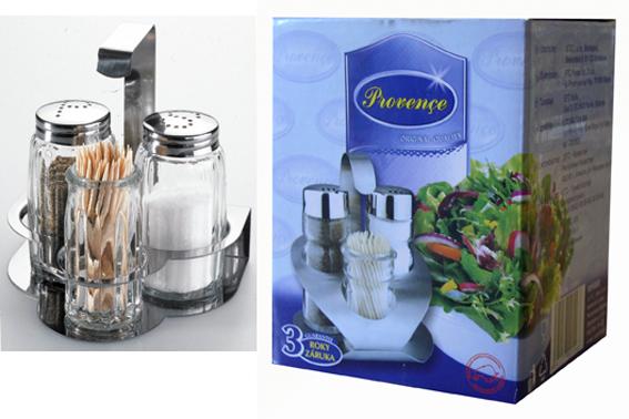 Dochucovací sada složená ze slánky, pepřenky a dózy na párátka z čirého skla v nerezovém stojánku, snadné přenášení i údržba, dokonalý design, vhodná do myčky na nádobí, pěkný design krabičky se nabízí jako vhodný dárek. Rozměry - 8, 9 x 3 cm.