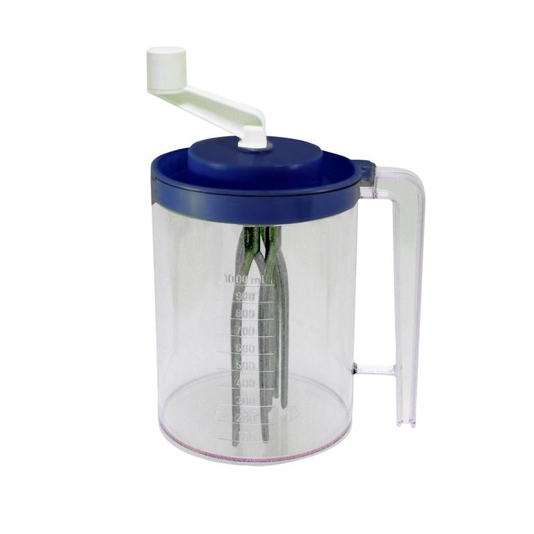 Ruční šlehač je vhodný na vyšlehání různých potravin např.: těsta, smetany apod. Je snadně použitelný bez elektřiny. Rukojeť padne krásně do ruky a umožňuje snadné uchopení šlehače. Materiál - aluminiové metly, plast. Objem šlehače je 1 l. Rozměry - 11,5 x 15,5 cm, barevné provedení - bílá, modrá a zelená.