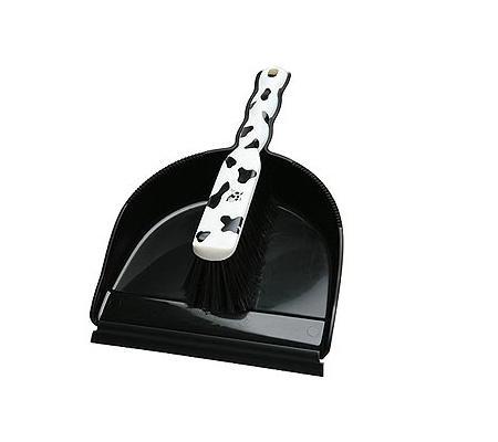Souprava lopatky se smetáčkem. Lopatka má pružnou hranu pro lepší nabírání smetí. Smetáček lze uchytit do rukojeti lopatky a zavěsit. Rozměry - 33 x 20,5 x 6 cm. Vzorováno motivem "Kráva".