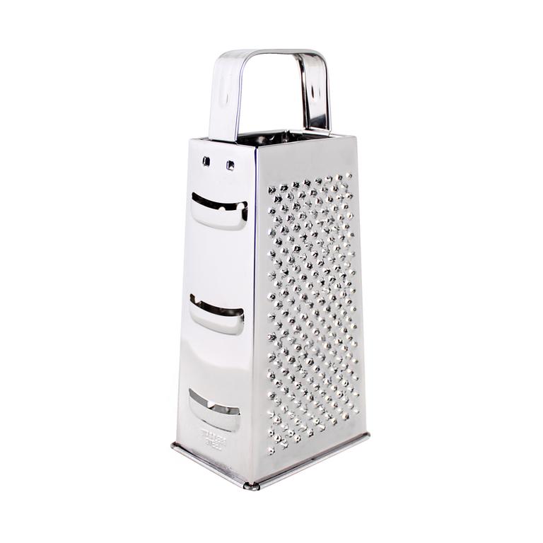 Čtyřhranné struhadlo se základními funkcemi strouhání a pevným držadlem. Lze strouhat na jemno, na hrubo a na plátky. Materiál - nerez. Rozměry - 9 x 20 cm.