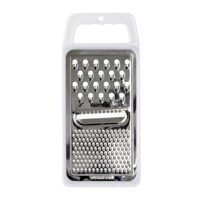 Ploché struhadlo se základními funkcemi strouhání a pevným plastovým držadlem. Lze strouhat na jemno, na hrubo a na plátky.