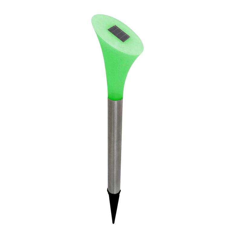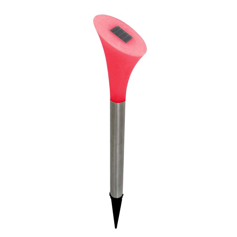 Zahradní plastová solární led svítilna ve tvaru květiny- kaly. Solární panel proměňuje sluneční světlo v elektrickou energii a shromažďuje ji během dne. Světelný senzor spouští světlo automaticky v noci. Světelným zdrojem je jasná LED žárovka s vysokou světelnou intenzitou po dobu až 8 hodin, při úplném nabití během dne. Součástí balení je 1 ks knoflíkové baterie 1.2V 40 mAh. Materiál plast, rozměry 7 x 38 cm. Assort barev.