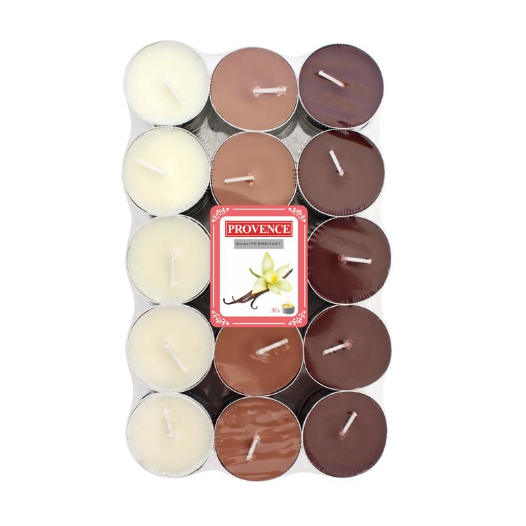 Vůně vanilka. Sada 30 ks. Doba hoření: cca 4 hodiny.