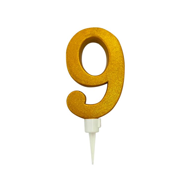 Svíčka číslice "9" je vhodná k zapichování na narozeninový dort. Je určena především pro děti, kombinací různých čísel vytvoříme na dortu ozdobu pro oslavence každého věku. Svíčka je zlatá, rozměr 16 cm.