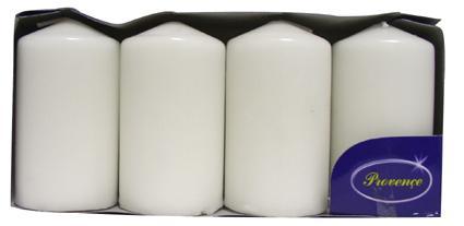 Svíčka válec - 4 ks. Jednoduchý zdroj světla, který navodí ve Vašem domově příjemnou atmosféru. Svíčka je zároveň vhodná na vytváření vánočních, velikonočních, ale i jiných arengema. Nezapomeňte prosím dbát na bezpečnost a držte se na svíčce uvedených bezpečnostních piktogramů. Rozměry svíčky - 5 x 9 cm. Barva bílá.