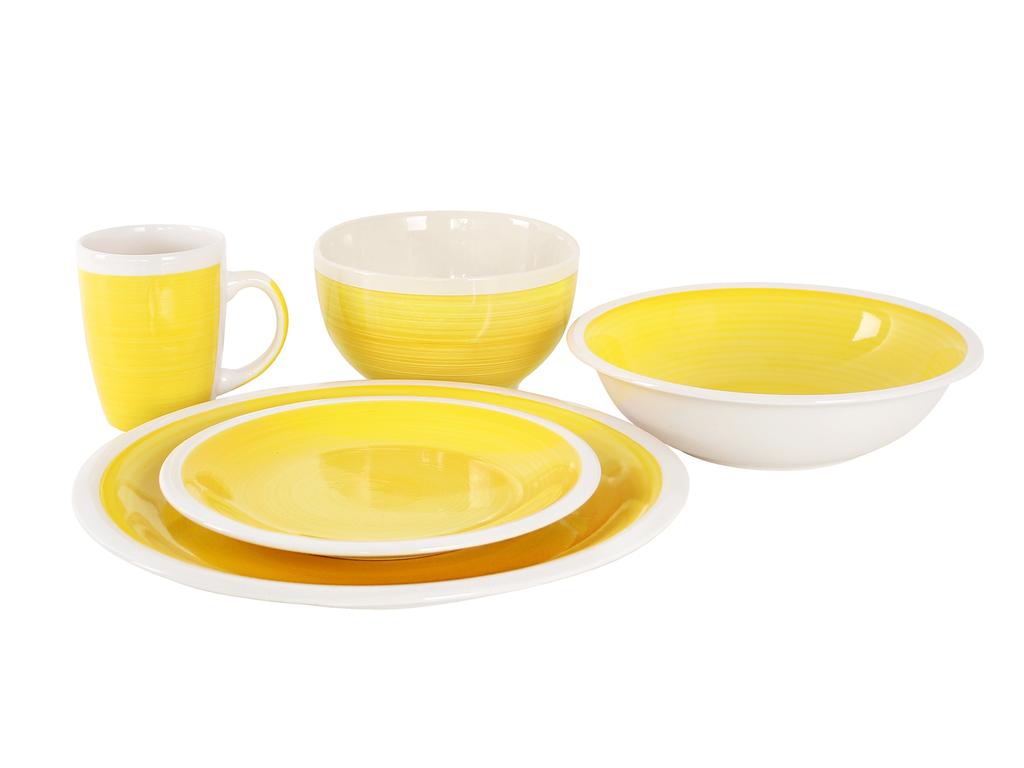 Talíř jídlení má velmi pěkný design. Je nedílnou součástí každé domácnosti či restaurace při servírování pokrmů. Je snadno omyvatelný, vhodný do myčky na nádobí. Barva žlutá, průměr 26,5 cm