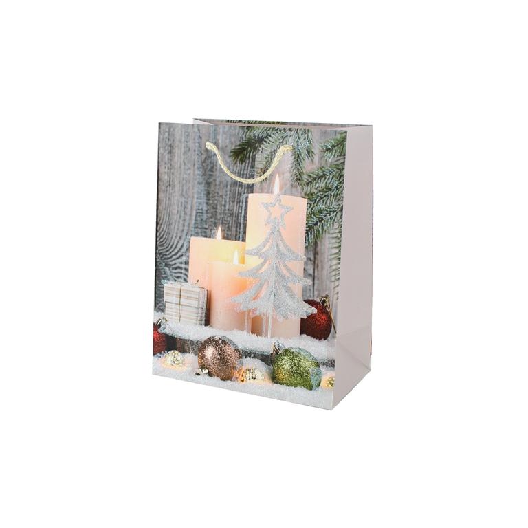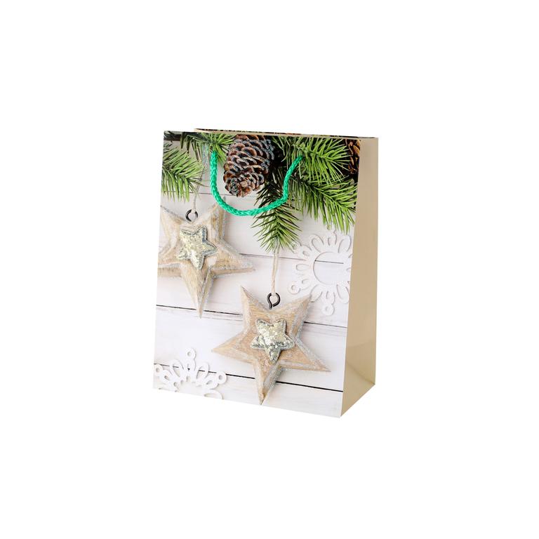 Dárková papírová taška s vánočními motivy. Rozměry - 23 x 18 x 10 cm, assort různých vánočních motivů.
