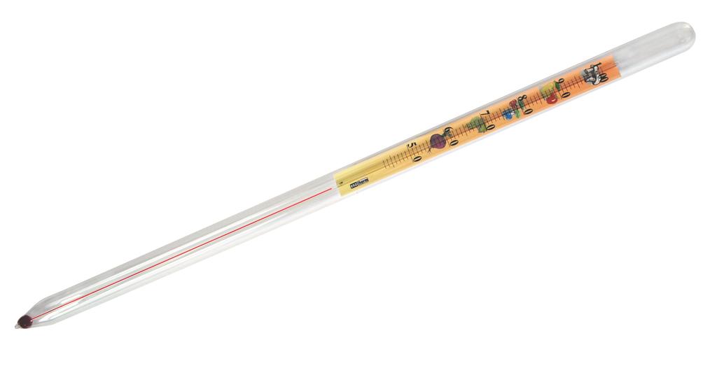 Zavařovací teploměr je hlavní součástí zavařovacích pomůcek, díky němu poznáte na kolik stupňů potraviny zavařujete, díky popisku, který je na něm uveden budete vědět na kolik stupňů se mají jednotlivé potraviny připravovat. Je snadno omyvatelný. Průměr teploměru je 1,8 cm, délka 43 cm.