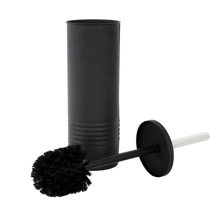 Souprava na toaletu - štětka s kovovým držadlem schovaná v nerezovém černém stojánku. Designově hezká, vhodná na každou toaletu.