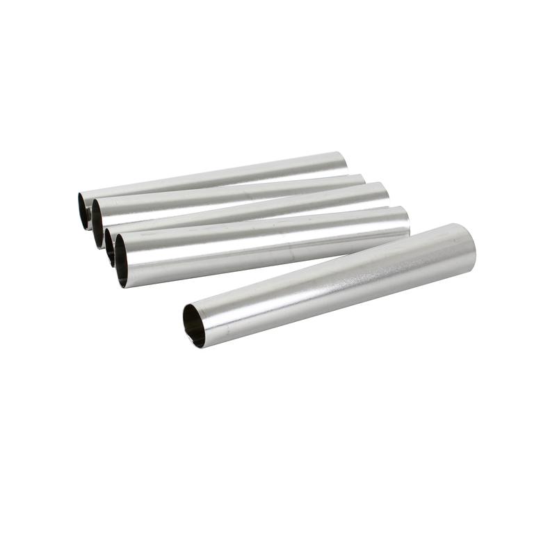 Trubičky na výrobu kremrolí jsou vyrobeny z pocínovaného plechu. Pusťte se do přípravy domácích kremrolí nebo trdelníku. Připravené těsto namotávejte na trubičky pomazané olejem nebo tukem, které rozložte na plech vyložený pečícím papírem.Balení obsahuje 5 ks. Délka trubiček 13,5 cm.